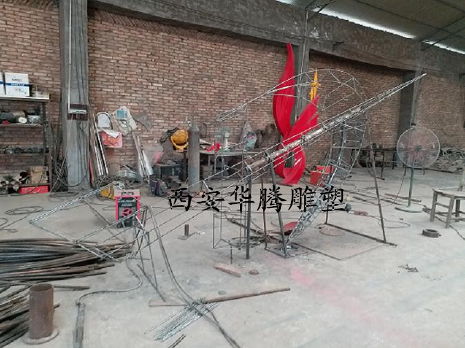 不锈钢喷漆雕塑安装于咸阳空军部队